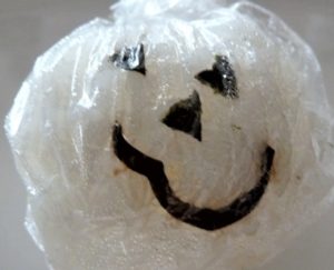 口の形が歪んでも、それがまたオバケらしくなりました。