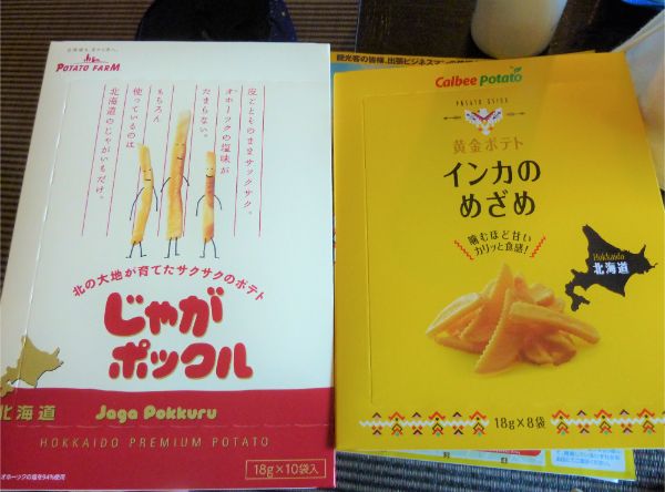北海道には、北海道産のジャガイモを使ったポテトスナック菓子が、あちこちで販売されていました。