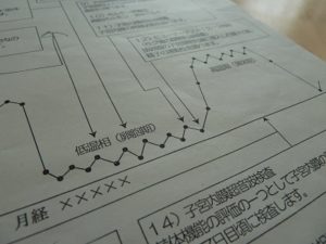 基礎体温表で正しく記録し、排卵日を予測し、排卵日のタイミングに合わせて注射・AIH・性交、というのが基本パターンです。これがとりあえず2回(2か月)続くことになります。